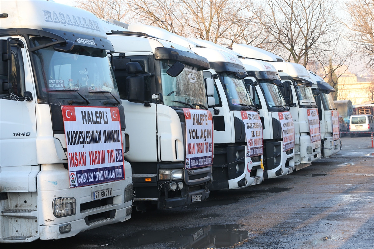 İSTANBUL (AA) - İstanbul Gıda Toptancı Tüccarları Derneği (İGTOD) üyeleri, 200 ton un yüklü 8 tırı Haleplilere gönderdi.