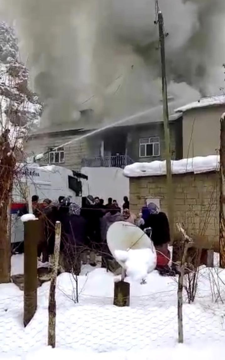 İtfaiye ekiplerinin yoğun kar nedeniyle geç ulaştığı köyde, yangın çevredeki evlere sıçramadan söndürüldü.