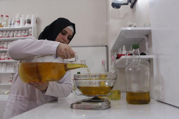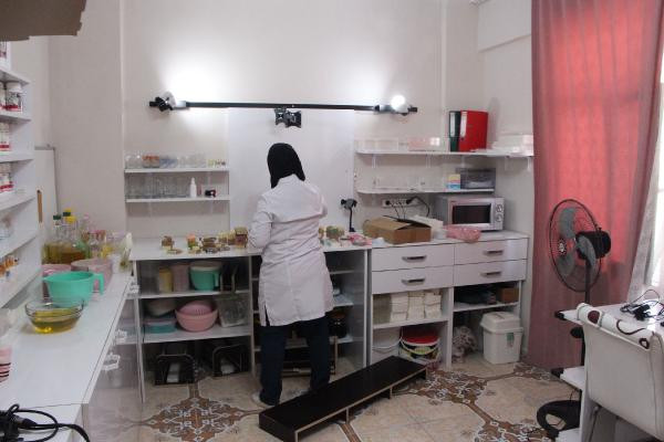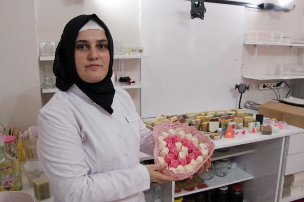 ŞANLIURFA'da Kübra Nur Akdağ, evinin bir odasını laboratuvara çevirerek geleneksel yöntemlerle hazırladığı 80 çeşit sabunu internet üzerinden dünyaya pazarlıyor.