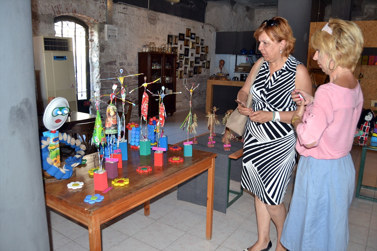 Emine Korkmaz ise çöpleri kullanarak biblolar yaptığını ifade ederek, "Ceviz kabukları, ağaç yaprakları, zeytin çekirdeklerini kullanarak bunları yaptık. Temiz bir çevreye katkı vermeye çalıştık. Çok da güzel bir sergi oldu." dedi.