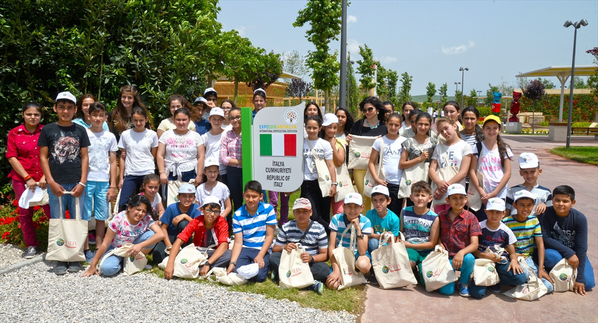 EXPO 2016 Antalya'da ülke bahçesi açan İtalya, etkinlikler kapsamında Solak İlköğretim Okulundan 50 öğrenciyi davet etti.