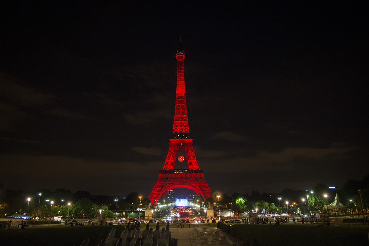 Fransa’nın başkenti Paris’te, İstanbul Atatürk Havalimanı'ndaki terör saldırısına karşı dayanışma amacıyla Eyfel Kulesi Türk bayrağının renkleri kırmızı beyaza büründü. Paris Belediyesinin dün aldığı karar uyarınca gece yarısı Eyfel Kulesi Türk bayrağının kırmızı beyaz renkleri ile ışıklandırıldı. Kule üzerine ayrıca Türk bayrağının ay-yıldızlı simgesi yansıtıldı. Paris Belediyesinden önceki gün yapılan yazılı açıklamada, "Terör saldırısı sonrası Türk halkı ile dayanışmak amacıyla ve terör kurbanlarını anmak için kulenin Türk bayrağı ile ışıklandırılacağı’’ duyurulmuş ancak teknik bir sorun yüzünden bu ışıklandırma perşembe gecesine ertelenmişti.