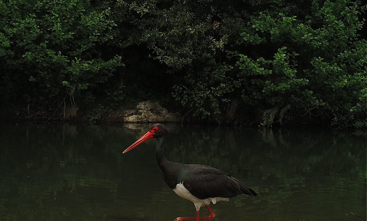 KASTAMONU (AA) - Kastamonu'nun Abana ilçesindeki Ezine Çayı'nda nadir rastlanan su samuru ve kara leylek görüntülendi.