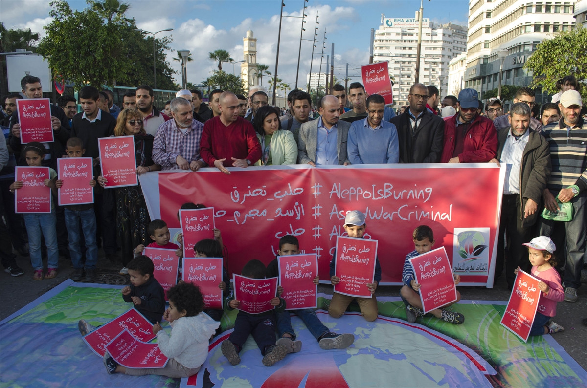 Fas Dayanışma Koalisyonunun çağrısına karşılık veren çok sayıda kişi, Halep halkının maruz kaldığı "soykırımı" kınamak amacıyla sessiz gösteri yaptı. Göstericiler Suriye Devlet Başkanı Beşşar Esed'i "savaş suçlusu" olarak tanımlayan ve "Halep yanıyor" yazılı pankartlar açtı.