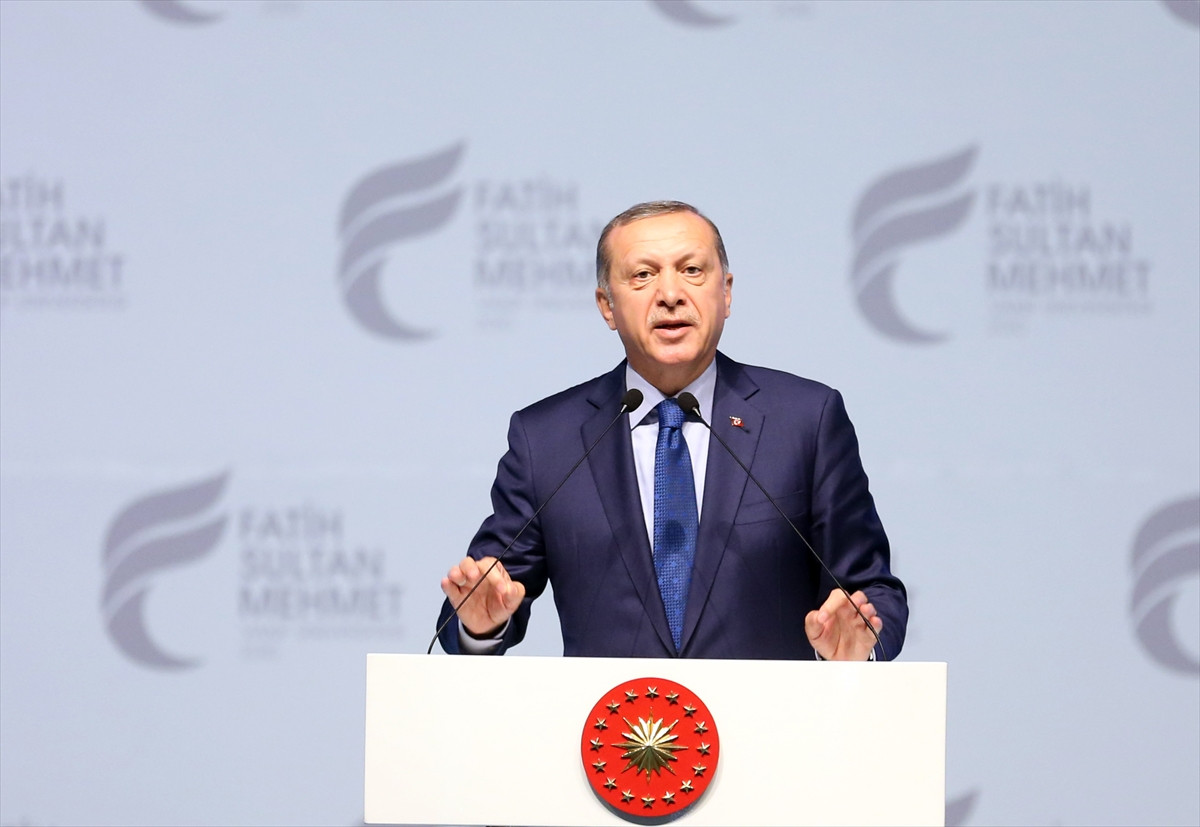 Erdoğan, Fatih Sultan Mehmet Üniversitesi'nin Haliç Kongre Merkezi'ndeki mezuniyet töreninde yaptığı konuşmada mezunlara bundan sonraki hayatlarında başarılar diledi.