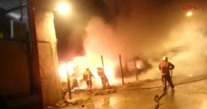 Yenikapı Mahallesi Kumsalı Sokak'ta park halindeki iş makinesinde henüz belirlenemeyen bir nedenle yangın çıktı. Yanan iş makinesinin lastiklerinin büyük bir gürültüyle patlaması, çevrede kısa süreli paniğe neden oldu. Vatandaşların durumu bildirmesi üzerine olay yerine gelen itfaiye ekipleri, söndürme çalışmalarına başlarken, polis ekipleri de çevre güvenliğini aldı. İtfaiyenin müdahalesiyle kontrol altına alınarak söndürülen yangında, iş makinesi kullanılamaz hale geldi. Yangının çıkış nedeninin araştırıldığı belirtildi.