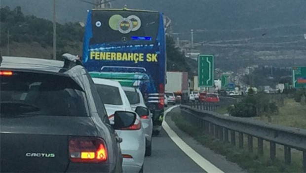 Saat 14.00'te Samandıra Can Bartu Tesisleri'nden otobüsle yola çıkan sarı lacivertli kafile bayram trafiğine yakalandı. İzmit girişinde neredeyse durma noktasına gelen trafikte takılıp kalan Fenerbahce otobüsü zaman zaman emniyet şeridini kullandı.Fenerbahçe trafiğe takıldı!Sarı lacivertli kafileyi taşıyan otobüsün Körfez İlçesi girişinde yoğun trafikte ilerlemesi polis eskortu tarafından sakıncalı bulununca, otobüs yön değiştirip E-5 diye tabir edilen D-100 Otoyolu'na girdi. Yaklaşık 1 saatte İzmit'e ulaşabilen Fenerbahçe kafilesi halen trafikte...