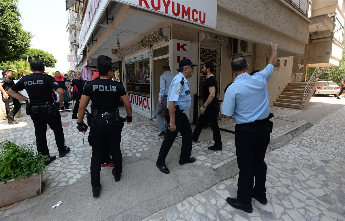 Bazıları çelik yelek giyen polis ekipleri, caddeyi trafiğe kapattı. Ekipler, daha sonra ellerinde silahlarla uzun süre kuyumcuda arama gerçekleştirdi.