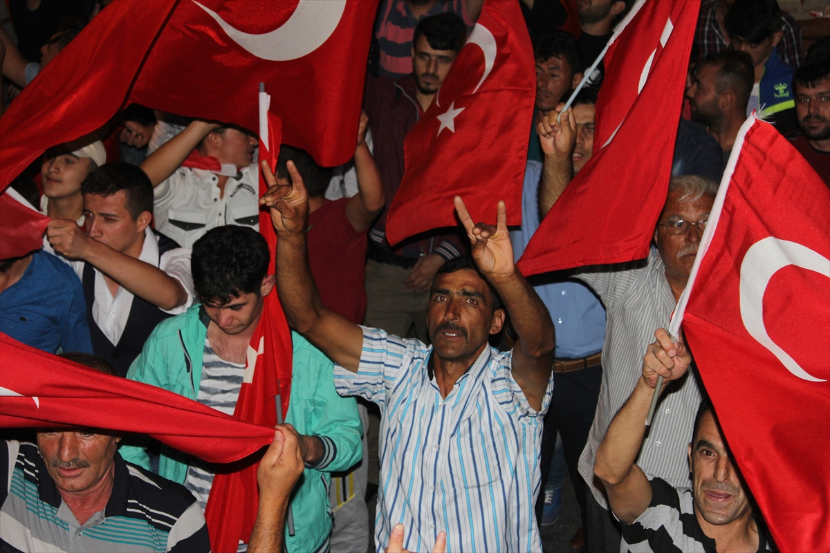 Milli İrade Platformu üyesi grup üyeleri, "Darbeler bizi yıldıramaz, milli iradeye saygı darbeye hayır" yazılı pankart açtı. Gruptakiler, ellerinde Türk bayrakları ile FETÖ'nün darbe girişimini lanetleyen sloganlar attı.