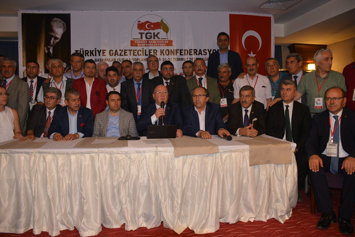 "Seçimle gelinen makamlardan, seçimle uzaklaştırılacağına ve hesabın halka verilebileceğini farklı düşüncelerin zenginlik görülmesini, bir başkasına hayat hakkı tanımayan yaklaşımların Türkiye'nin gündeminden bir daha gelmemek üzere düşmesi gerekir. Güvenlik güçleri ancak ve ancak vatanın birliğini korumaması maksadıyla kullanılabilir. Milli iradenin üzerinde başka bir beşeri gücü kabul etmediğimizi haykırıyoruz. 7 federasyonu ve 93 cemiyetten oluşan Başkanlar Kurulu için hazır bulunduğu Ağrı'da Türkiye Gazeteciler Konfederasyonu mensupları olarak diyoruz k, bizler en zor zamanda en zor şartlar altında birliğimizi, beraberliğimizi ve kararlılığımızı muhafaza edeceğiz."