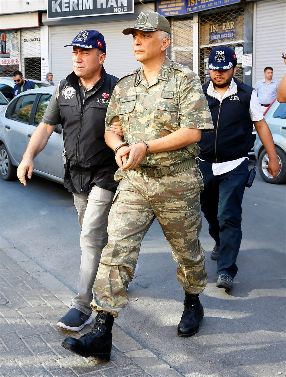 İZMİR (AA) - Fetullahçı Terör Örgütü'nün (FETÖ) darbe girişimiyle ilgili İzmir'de sürdürülen operasyon kapsamında bugün 3 tümgeneral, 2 tuğgeneral ve 1 tuğamiral gözaltına alındı.