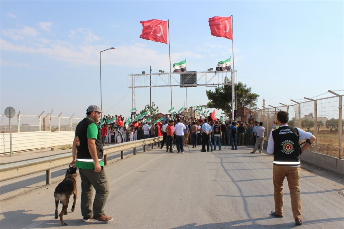 Türk ve Suriye bayraklarıyla sınır hattına yakın bölgelerdeki zeytinlik alanlarda buluşan Suriyeliler, "Türkiye'nin yanındayız", " Sonuna kadar Erdoğan'ı destekliyoruz", "Türkiye'nin acısını paylaşıyoruz" şeklinde sloganlar attı.