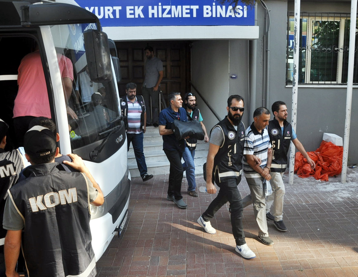 İZMİR (AA) - Fetullahçı Terör Örgütü'nün (FETÖ) darbe girişimine yönelik soruşturmada, Ege Ordu Komutanlığı ile Maltepe Askeri Lisesi'nde gözaltına alınan 12 askeri personel adliyeye sevk edildi.İzmir Cumhuriyet Başsavcı Vekili Okan Bato'nun FETÖ'nün darbe girişimine yönelik İzmir'de sürdürdüğü soruşturma kapsamında, polis tarafından gözaltına alınan Maltepe Lisesi Komutanı Albay Ufuk Gökşen, Albay Turhan Özkal, Albay Kadir Canpolat, Albay Murat Alpaslan, Yarbay İsmail Selvi, Yarbay İbrahim Fatih Büyükbaş, Binbaşı Durmuş Ali Vurkun, Binbaşı Ali Rıza Bayraktar, Binbaşı Murat Yayla, Binbaşı Hüseyin Kayır, Üsteğmen Yücel Atığan ile Astsubay İsmet Durgun'un emniyetteki işlemleri tamamlandı.