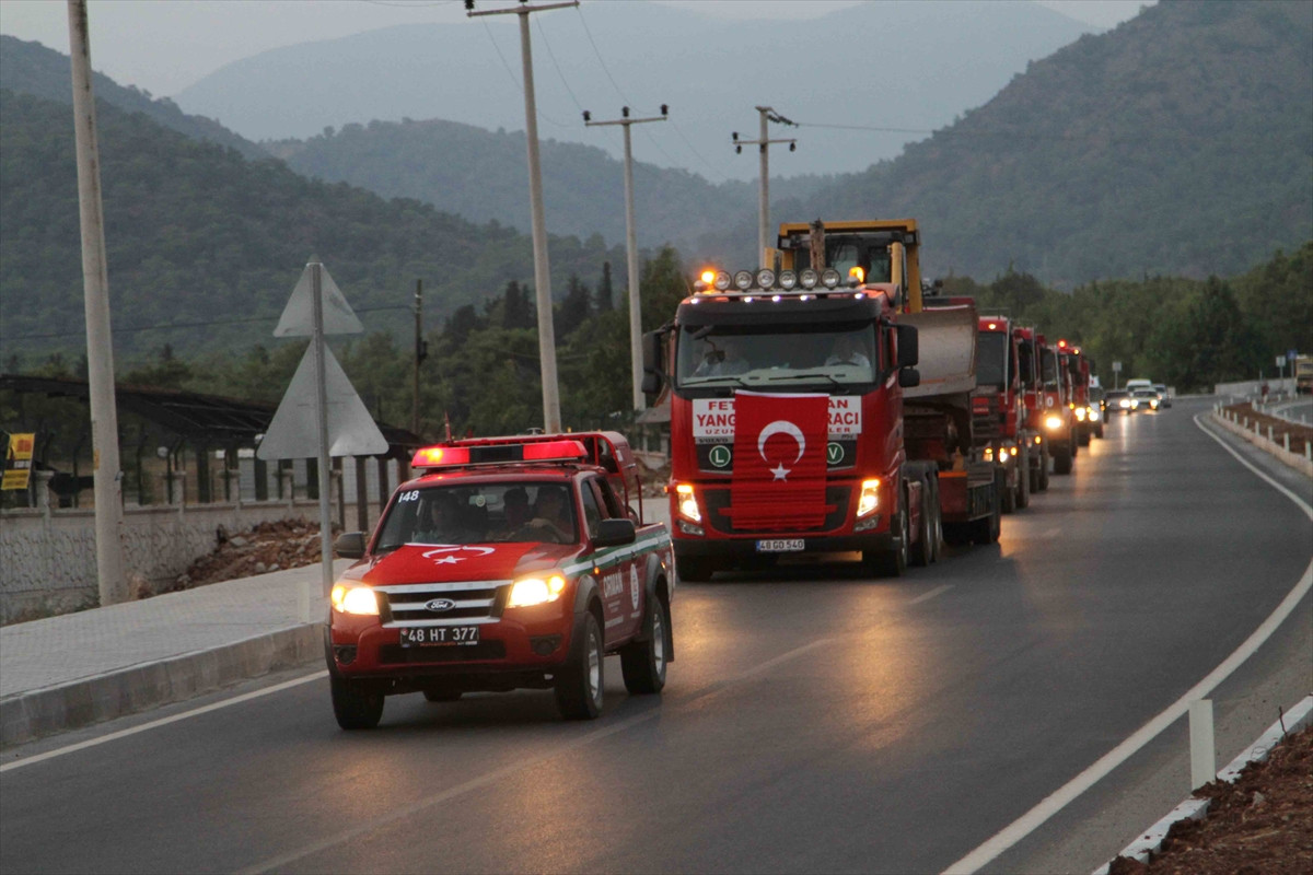 Karagedik Mahallesi Değirmenbaşı mevkisindeki orman deposu önünde toplanan Fethiye Orman İşletme Müdürlüğü çalışanları, araçlarına Türk bayrağı astı. Daha sonra araçlarına binen işçiler, siren ve korna çalarak FETÖ'nün darbe girişimine tepki gösterdi.