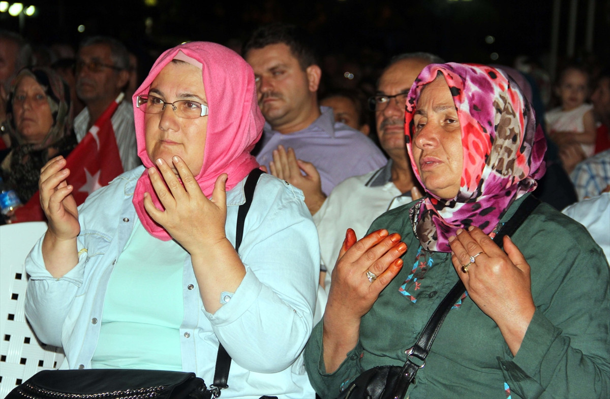 Meydanı dolduran kalabalık ayrıca İstiklal Marşı okuyup, olaylar sırasında yaşamını yitiren şehitler için bir dakikalık saygı duruşunda bulundu.