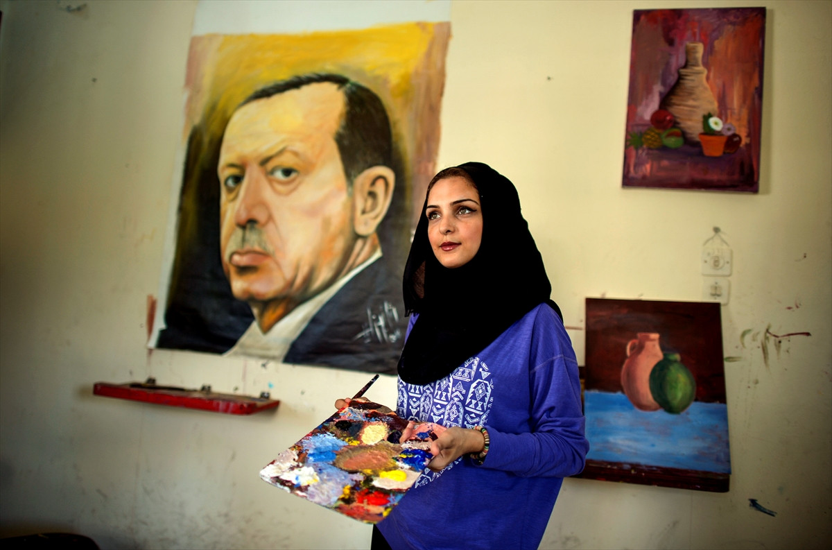 Gazze'nin batı kesiminde ikamet eden Ebu Zayid, bir buçuk metreye bir metre ebadında ve yedi saatlik bir çalışma sonucu ortaya çıkan yağlı boya tabloda, Erdoğan'ın yüz ifadesini "kızgın ve iftihar eder" şekilde resmettiğini belirterek, "Türkiye'nin içinde bulunduğu durumu, Cumhurbaşkanının yüz ifadesine yansıtmaya çalıştım." dedi.