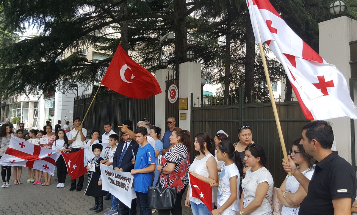 TİFLİS (AA) - Dünya Karapapak Türkleri Birliği tarafından Gürcistan'ın başkenti Tiflis'te düzenlenen gösteride, FETÖ'nün darbe girişimi protesto edildi.
