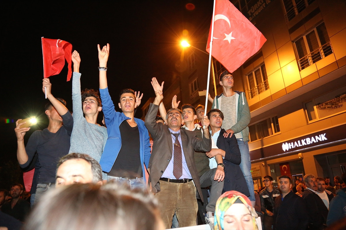 Dün akşam saatlerinde Cumhuriyet Caddesi'nde bulunan valilik binası önünde toplanan binlerce kişi, çeşitli sloganlar atarak ve zaman zaman tekbirler getirerek hükümeti desteklemeye devam ediyor.
