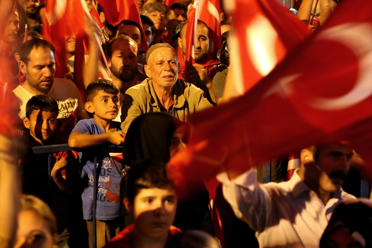 Cumhuriyet Meydanı'nı dolduran binlerce Erzincanlı, darbe girişimi önlenmiş olmasına rağmen alanı terk etmeyerek, hem tepkilerini dile getiriyor hem de demokrasi ve hükümet lehine gösterilerde bulunuyor.