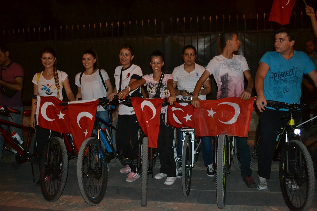 Merkez Yenişehir ilçesi İstasyon Meydanı'nda çeşitli sivil toplum ve siyasi parti üyeleri FETÖ'nün darbe girişimini protesto etmek için bir araya geldi.