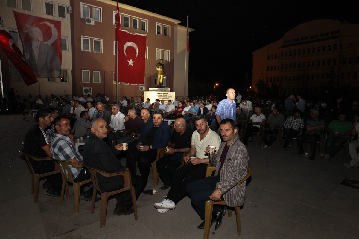 AK Parti İlçe Başkanlığı önünde toplanan yaklaşık bin kişilik grup, Atatürk Meydanı'na doğru yürüyüşe geçti. Türk bayraklarıyla yürüyüş yapan vatandaşlar slogan atarak darbe girişimine tepki gösterdi.