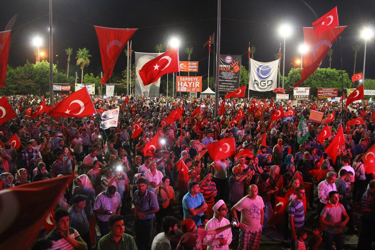 Cacabey Camisi avlusunda toplanan çok sayıda vatandaş, darbe girişimi sırasında yaşamını yitirenler için saf tuttu.