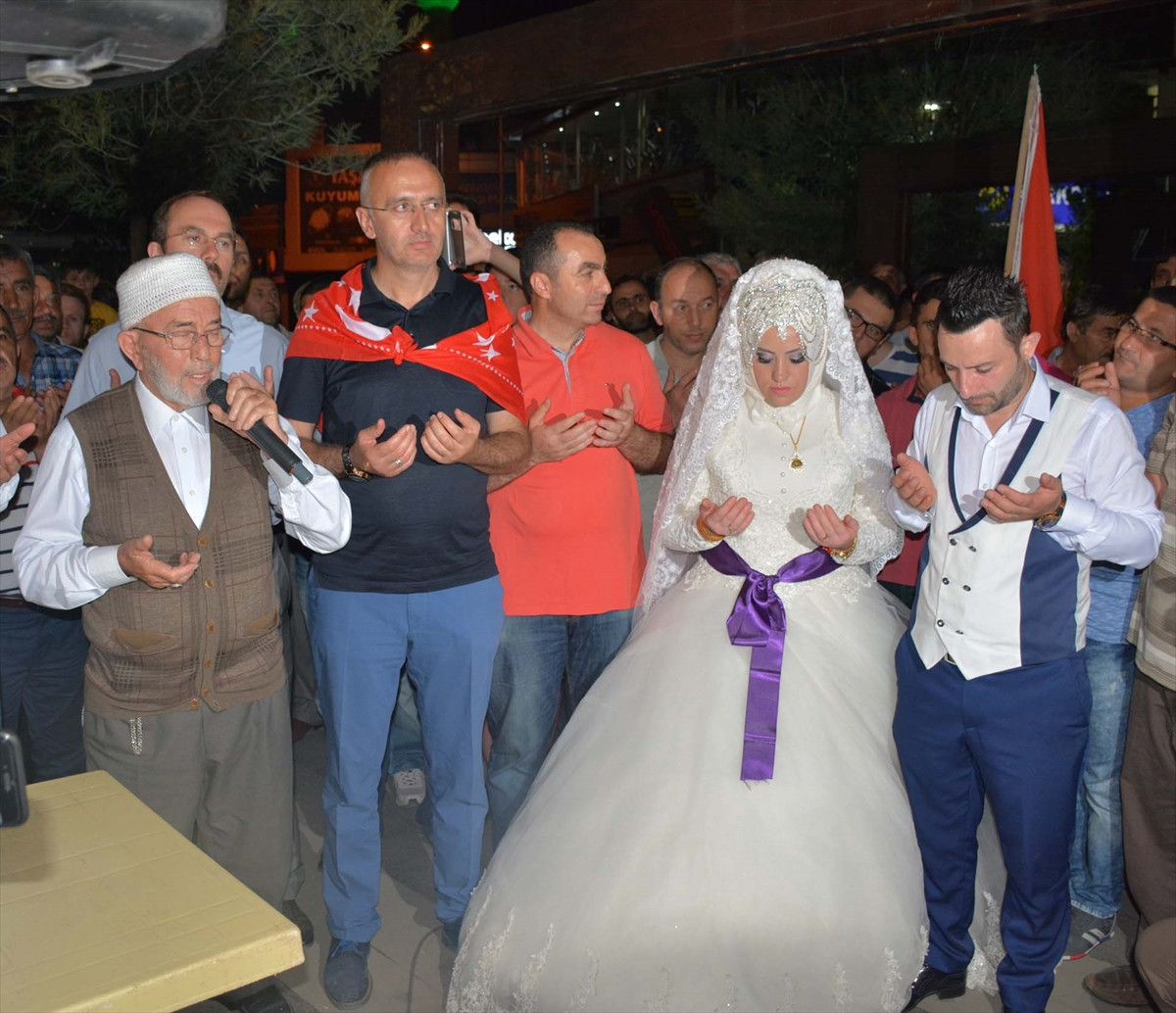 Bulancak ilçesinde de Cumhuriyet Meydanı'nda toplanan vatandaşlar ellerinde Türk bayraklarıyla slogan atarak darbe girişimine protestoda bulundu. Bugün dünya evine giren Şükrücan ve Burcu Yıldırım çifti de meydana gelerek protestoya destek verdi.
