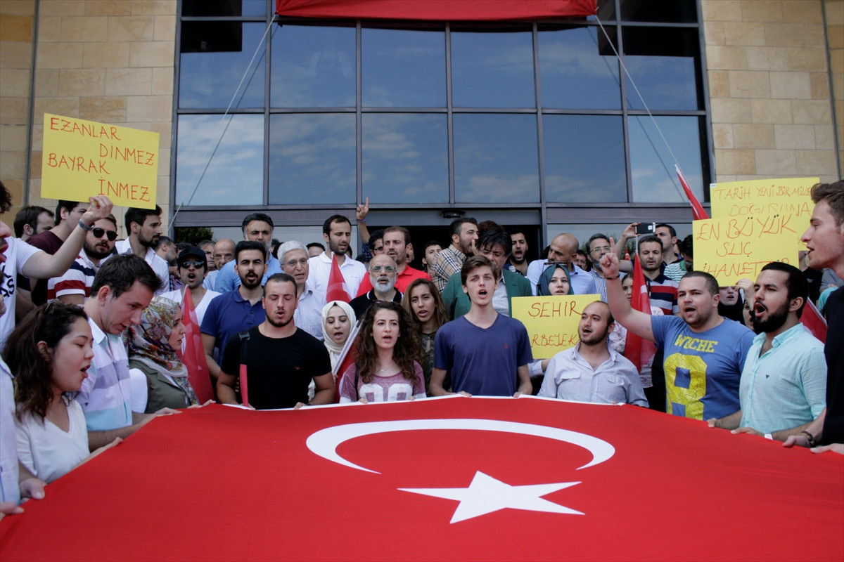 İSTANBUL (AA) - FETÖ'nün darbe girişimi, İstanbul Şehir Üniversitesinde akademisyenler, öğrenciler ve idari personel tarafından protesto edildi.