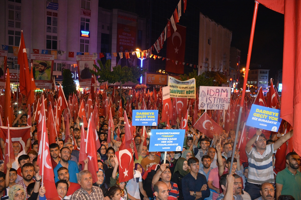 İSTANBUL (AA) - Fetullahçı Terör Örgütünün (FETÖ) darbe teşebbüsünü protesto etmek için vatandaşlar Esenler Meydanı'nda toplandı.