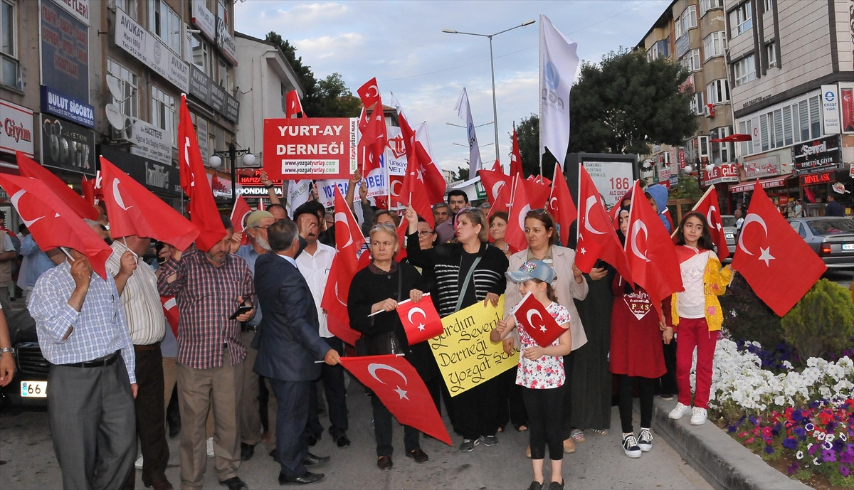 Cumhurbaşkanı Recep Tayyip Erdoğan'ın çağrısı üzerine, AK Parti il ve ilçe başkanlıkları önüne giden vatandaşlar, ellerindeki Türk bayraklarıyla slogan atarak, tepki gösterdi.