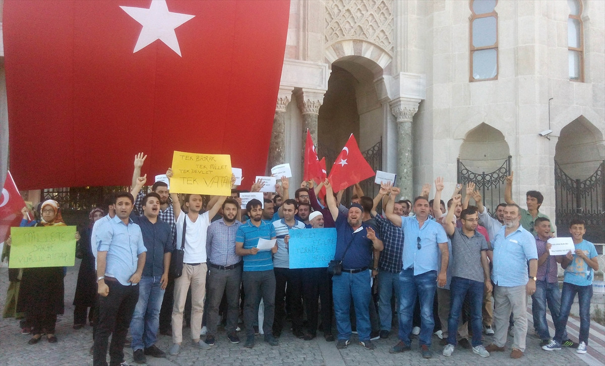 İSTANBUL (AA) - Türkiye Gençlik Vakfı (TÜGVA) İstanbul Şubesi üyesi bir grup öğrenci, Fetullahçı Terör Örgütü'nün (FETÖ) darbe girişimini protesto etti.