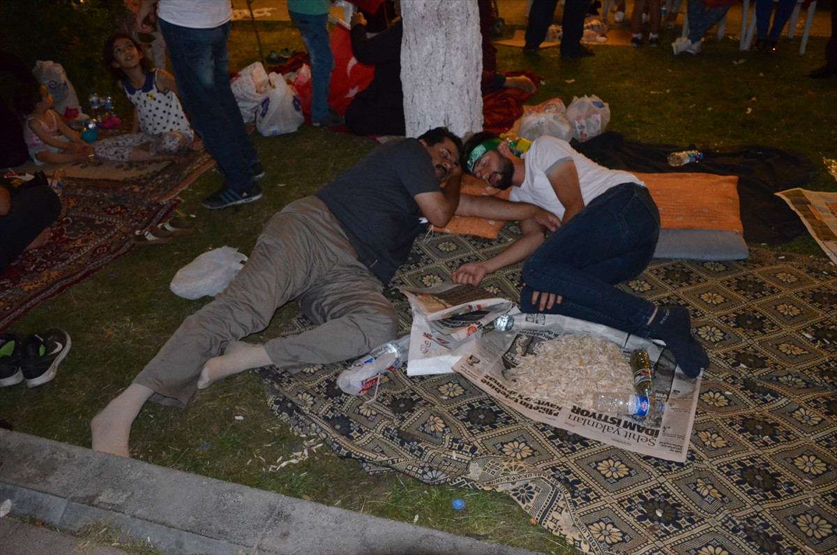 Cumhurbaşkanı Recep Tayyip Erdoğan'ın konuşmalarının hoparlörlerden verildiği kent merkezinde vatandaşlar, sabaha kadar "Demokrasi nöbeti" tutmaya devam edecek.