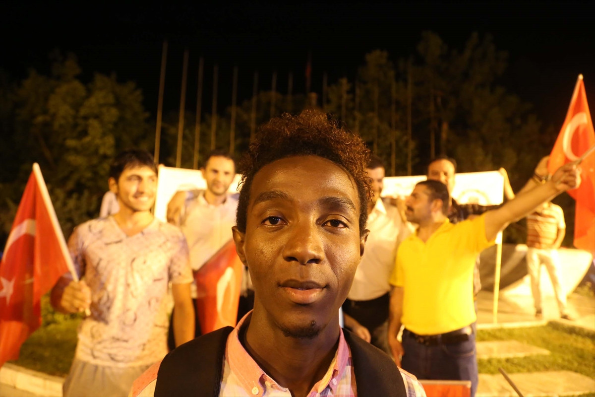 Türk bayrakları sallayan ve darbe karşıtı sloganlar atan öğrencilerden Somalili Guled Abdurrahman Hassan, kente 2012'de geldiğini, burada yeni bir hayata başladığını söyledi.