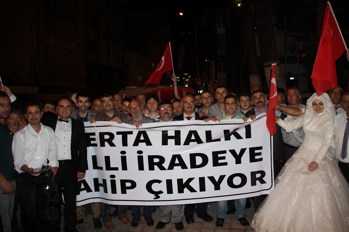 Türk bayrakları taşıyan grup, darbe girişimini protesto etmek amacıyla başlattıkları yürüyüş kapsamında İnönü Caddesi'nden geçerek Valilik Meydanı'na geldi.