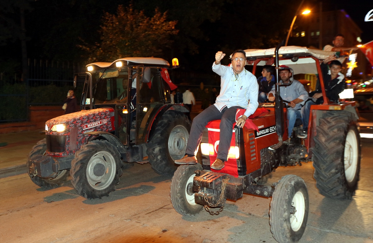 Mahalle muhtarları aracılığıyla bir araya gelen çiftçiler, tarladaki mahsullerini toplamayı bırakıp, "demokrasi nöbetine" traktörleriyle katıldı. Türk bayraklarıyla donattıkları traktörlerinin üzerinde yine bayraklar sallayan çiftçiler, korna çalarak saatlerce şehir merkezini gezdi.