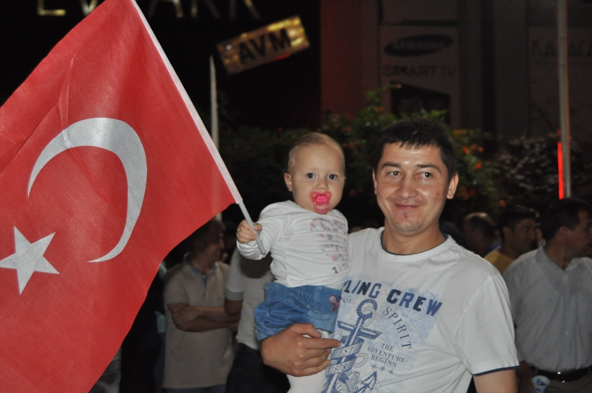 Meydanda çok sayıda kişi "Dik dur eğilme, bu millet seninle", "Darbeye karşı omuz omuza" sloganları atarak, FETÖ'nün darbe girişimini kınadı.