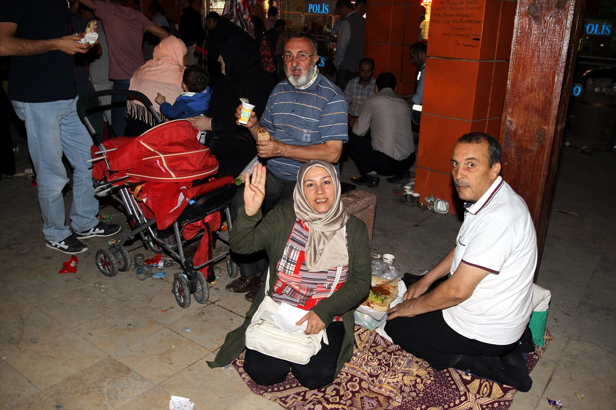 Bazıları kaldırımda Kur'an-ı Kerim okuyan, kimileri ise çocuklarını kucaklarında uyutan vatandaşların nöbeti devam ediyor.