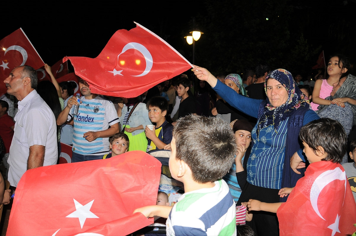 Hükümet Konağı meydanında gerçekleştirilen etkinliğe katılan akademik ve idari personel, Türk bayraklarını açarak darbe girişiminde bulunanlara yönelik sloganlar attı.