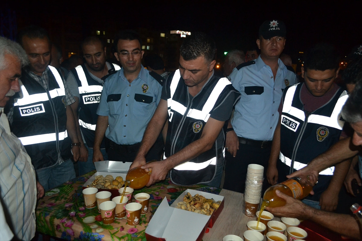 HATAY (AA) - Hatay'ın Defne ilçesinde Fetullahçı Terör Örgütü'nün (FETÖ) darbe girişimini sonrası Alevi vatandaşların yoğun olarak yaşadığı mahallede olası provokasyonlara karşı nöbet tutan polislere mahalleli pasta ve içecek ikramında bulundu.