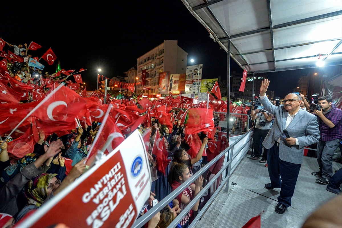 AK Parti İl Başkanı Zahir Soğanda ise, demokrasi nöbetinin devam edeceğini ifade ederek, vatandaşların iradesine, cumhurbaşkanına sahip çıktığını ve meydanları boş bırakmadığını söyledi.