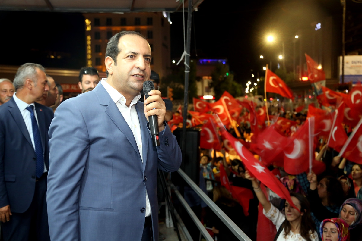 HATAY (AA) - Hatay Valisi Ercan Topaca, Fetullahçı Terör Örgütü'nün (FETÖ) darbe girişimine yönelik, "Hiçbir silah ve hiçbir güç, milletimizin gücünün karşısında duramayacaktır. Çok açık söylüyoruz ki, tek yürek ve tek yumruk olursak daima kazanan biz olacağız ve hainlerin planları bozulacaktır." dedi.Vali Topaca, AK Parti, MHP ve CHP milletvekilleri, il başkanları ile...