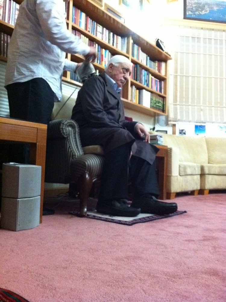 Dikkat çeken fotoğraflarda Gülen, Pensilvanya’daki evinde örgüt elemanlarına masaj yaptırırken ve elemanlarını dizinin dibine toplamış ihanet talimatları verirken görülüyor.