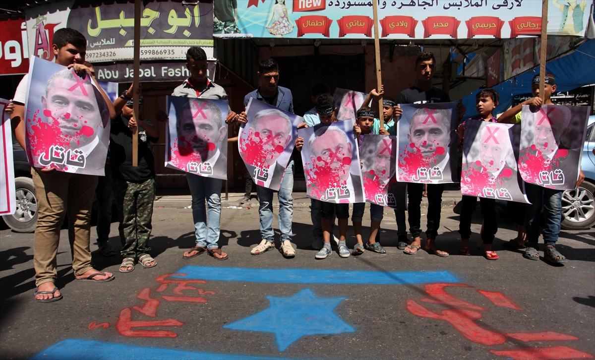 Peres, İsrail Başbakanı Binyamin Netanyahu ve ABD Başkanı Barack Obama'nın fotoğraflarını yakan gençler, Peres'in cenazesine katılan Filistin Devlet Başkanı Mahmud Abbas'ı da kınayan sloganlar attı.