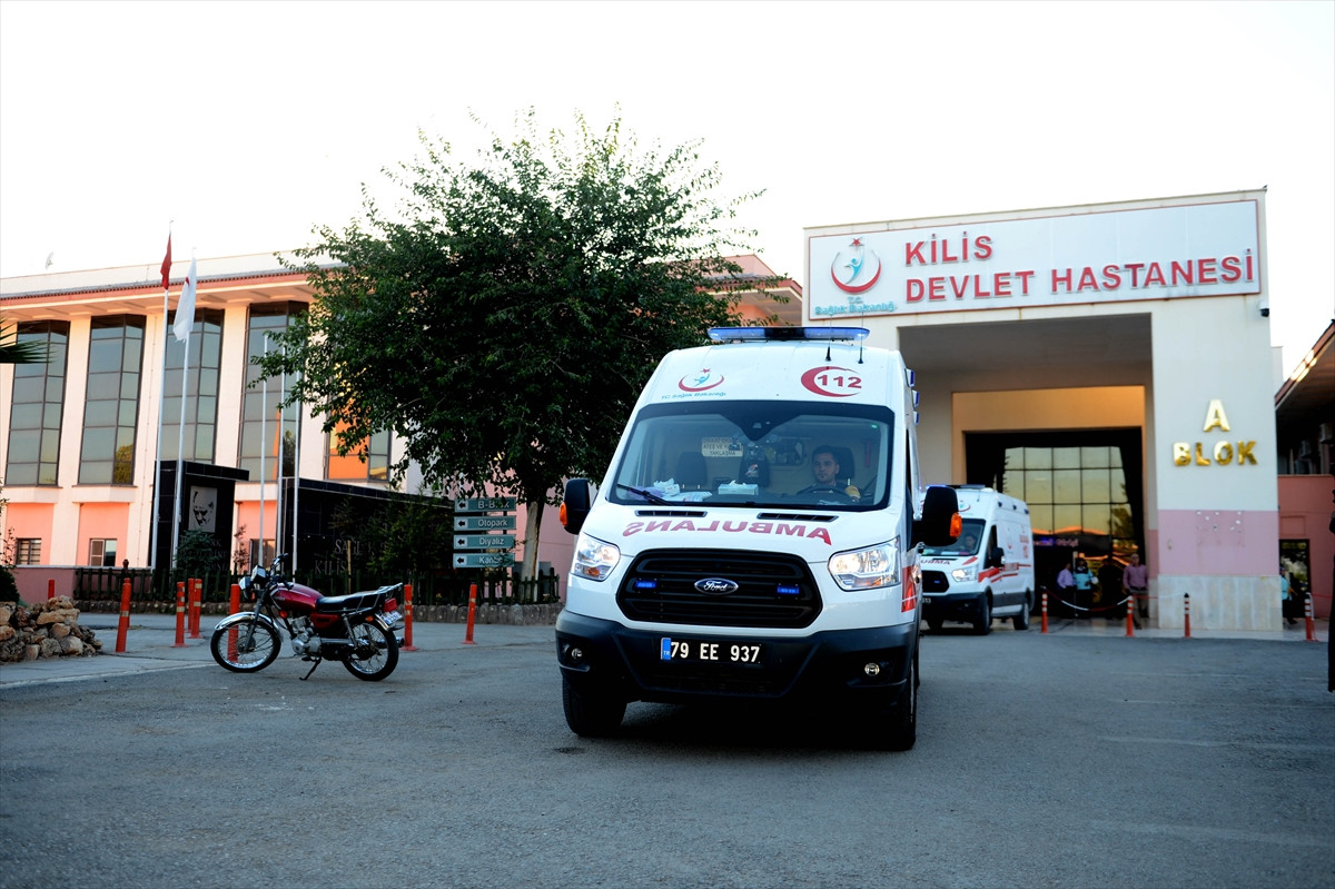 Terör örgütü DAEŞ üyelerince Vukuf bölgesinde "drone"dan atılan bombanın patlaması sonucu yaralanmalarının ardından Kilis Devlet Hastanesinde tedavi altına alınan 2 askeri taşıyan ambulanslar, Gaziantep Havalimanı'na hareket etti.