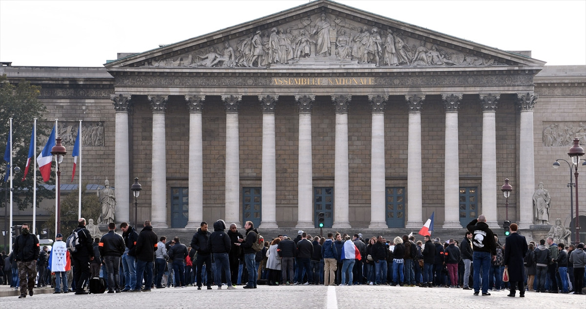 Başkent Paris’teki gösteride 900 polis, meclis binası önünde toplandı. Sivil giysileri ile protestoya katılan polisler, çalışma koşularının düzeltilmesi için sloganlar attı.