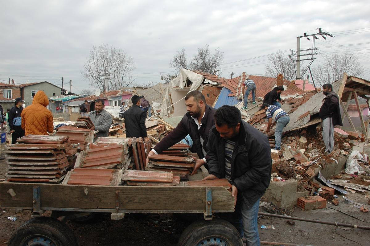 Bazı gecekondu sakinleri de evlerinden çıkan tahta, kiremit ve tuğla gibi malzemeleri kurtarmaya çalıştı.