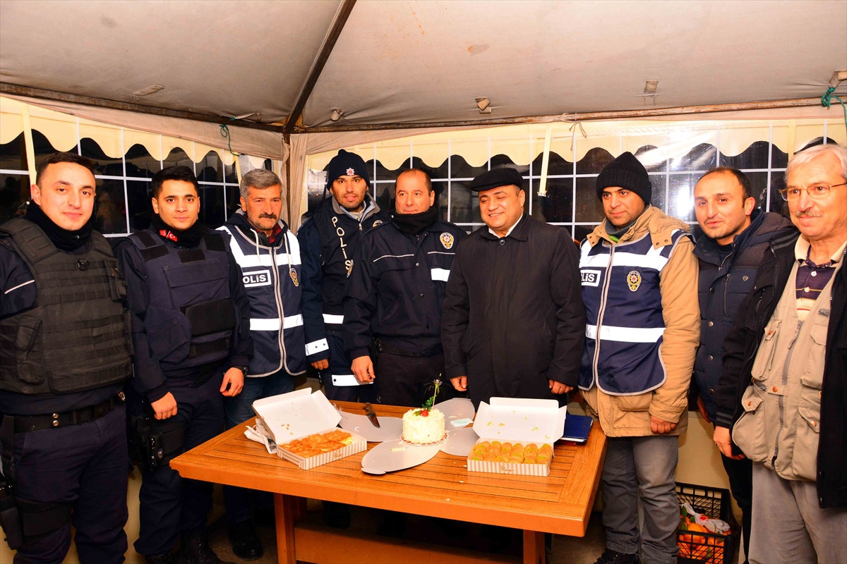 Çetinkaya daha sonra basın mensupları ile bölgede görev yapan polis memurlarının yeni yılını kutlayarak, yeni yıl pastasını kesti.