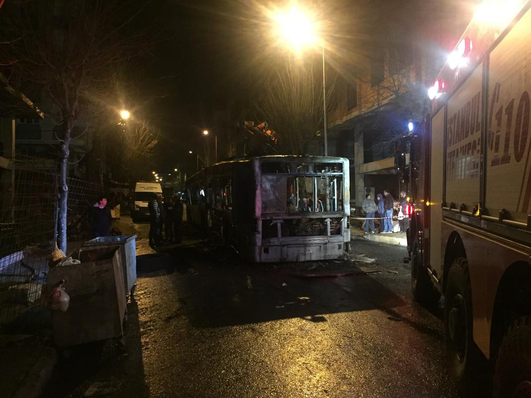 İSTANBUL (AA) - Sultangazi'de izinsiz gösteri yapan grup, belediye otobüsünü molotofkokteyli atarak yaktı.