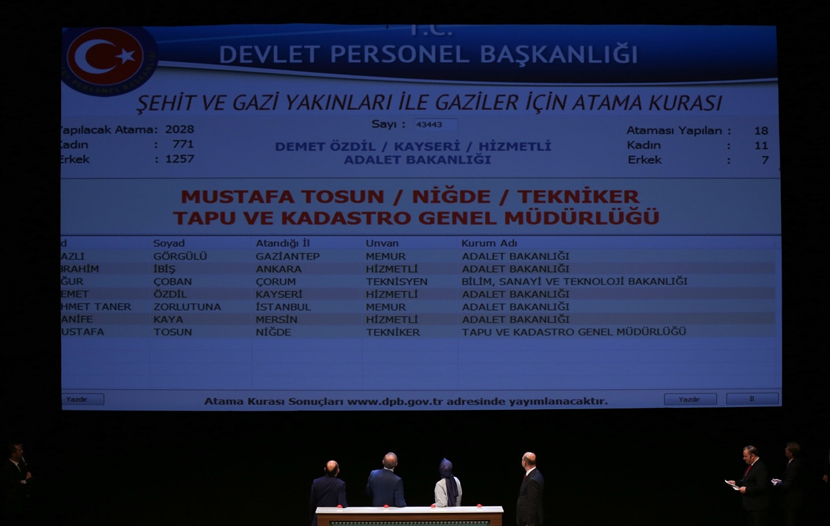 Erdoğan, Cumhurbaşkanlığı Külliyesi Beştepe Kültür ve Kongre Merkezi'nde düzenlenen şehit yakınları, gazi ve gazi yakınları ile sivil terör mağdurlarının ve yakınlarının kamu kurum ve kuruluşlarına atama törenine katıldı.