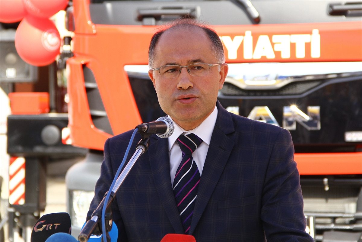 İtfaiye Daire Başkanlığının Şehreküstü Mahallesi'ndeki tesislerinde düzenlenen törende, yeni yangın söndürme araçlarının tanıtımı yapıldı.